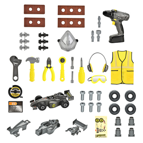 소년 23 조각 DIY 전기 드릴 수리 도구 소리 장난감 플라스틱 조립 레이싱 자동차 핸드 박스 패키지 어린이 놀이 세트